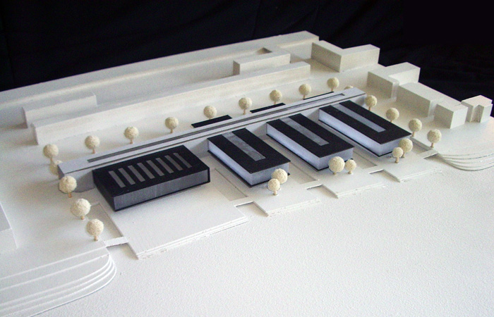 die grundidee besteht darin, die von uns gewählten hauptbereiche sport, wissen, kultur und ernährung in getrennten, zum wasser hin orientierten riegeln zu platzieren, die durch einen langen baukörper verbunden sind, der als "strasse der begegnung" fungiert. das eg sowie das 1.og des gebäudes werden komplett öffentlich sein und beherbergen die "+" angebote, wie das schwimmbad, die sporthalle, die bibliothek, das auditorium und die mensa. diese bereiche dienen nicht nur den schülern, sondern auch den anderen bewohnern der insel. so bietet die schule auch nach unterrichtsende ein weitreichendes angebot an aktivitäten und kann so den ganzen tag genutzt werden. im 2.og befinden sich die klassen-, die naturwissenschafts- und kunsträume. sie alle sind rund um einen innengarten angeordnet, der den schülern die möglichkeit bietet, sich innerhalb der klassenverbände im freien aufzuhalten, ohne dafür extra auf den großen schulhof zu gehen. das hat den vorteil, das die einzelnen altersstufen auch getrennt von einander ihren bedürfnissen nachkommen können, da nur zwei jahrgänge in jedem riegel untergebracht sind. zudem werden durch diese gärten die klassenräume von beiden seiten belichtet, was sie sehr offen und hell gestaltet.