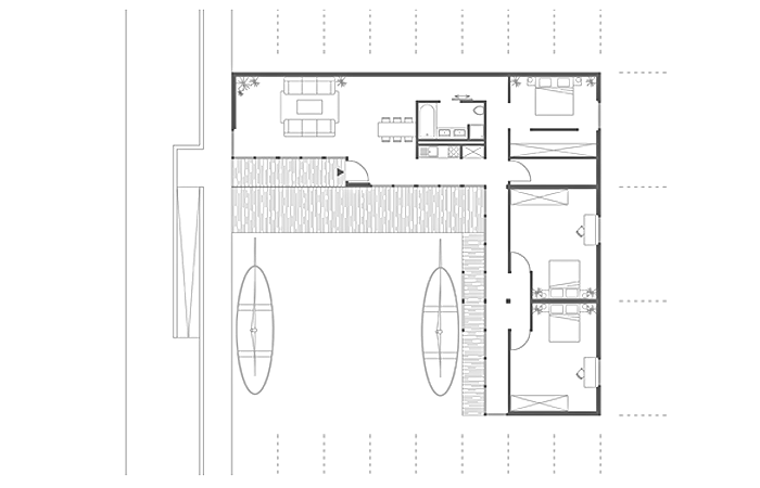 um auf die problemstellungen einzugehen wurde ein boxenprinzip entwickelt, welches neue möglichkeiten eröffnet um energie und kosten zu sparen und trotzdem ein ansprechendes äußeres zu bieten. im hier gezeigten boxenprinzip kommt ein raster zum einsatz, das es erlaubt aus nur wenigen vorgefertigten bauteilen unzählige grundrissvarianten zu entwickeln. durch das format, dessen abmessungen mit denen eines üblichen containers identisch sind, bietet das konzept optimale transportmöglichkeiten mit schiff, bahn, lkw oder flugzeug. die elemente haben alle dieselbe größe, lassen sich vorfertigen und helfen dadurch kosten und energie zu sparen. um dem problem der wachsenden bevölkerung entgegen zu wirken, weicht dieses konzept auf das wasser aus und schafft somit neue lebensräume. die schwimmpontons bilden zu dritt gestapelt wieder genau das container format, um genauso transportabel zu sein wie die module selber. außerdem beherbergen sie die komplette haustechnik sowie ballast-tanks um die höhe des bodens der höhe der anlegestelle anpassen zu können.