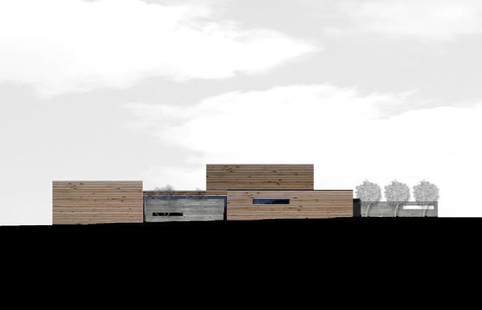 der kindergarten ist nach dem baukasten prinzip aufgebaut und besteht aus mehreren kuben, die ineinander verschachtelt sind und trotzdem ein homogenes äusseres bilden. die gruppenräume sind zur morgensonne ausgerichtet und bieten einen gruppeninternen rückzugsraum. auf ihrer rückseite befindet sich eine große halle, die den kindern als begegnungsfläche dient und auch für veranstaltungen genutzt werden kann. es wurde darauf geachtet das von innen möglichst viel grünraum zu sehen ist, so das das gefühl entsteht man wäre draussen in der natur. diesem aspekt folgt auch die materialwahl, welche verschiedene elemente der natur aufgreift, und so den kindern ein gefühl davon vermittelt, welche baustoffe wie eingesetzt werden können.