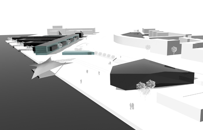 am alten schiehaven in rotterdam soll eine brach liegende fläche in ein städtisches zentrum verwandelt werden, welches aufenthaltsqualität für einen ganzen stadtteil bietet und den direkt am wasser liegenden platz attraktiv für die bewohner des viertels macht. zu beachten ist hierbei die einbindung des vorhandenen museums, sowie die erhaltung der angrenzenden sportflächen